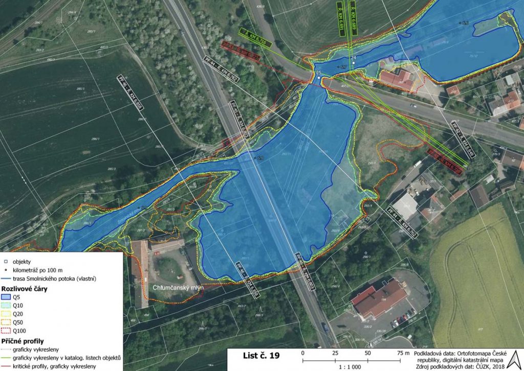 Vypočteme rozlivové čáry na malých tocích, určení ohrožených objektů v daném území. Stavnovíme kritické linie a místa omezující odtokové poměry včetně mapových výstupů.